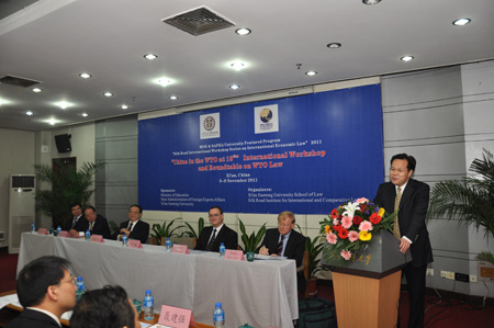 作为教育部2011学校特色外专项目之一,首届“丝绸之路国际经济法高级国际研讨班系列——中国入世十年WTO法国际研讨班与圆桌讨论会”于11月4日上午在西安交大科学馆207隆重开幕。我国原驻英国大使马振岗、商务部条法司原司长张玉卿、世界贸易组织规则司司长Johann Human、瑞士伯尔尼大学世界贸易研究所所长Thomas Cottier、西安交大副校长卢天健、陕西省法学会研究部主任魏清利等出席开幕式。米兰(中国)院长兼丝绸之路国际法与比较法研究所所长单文华教授主持开幕式。