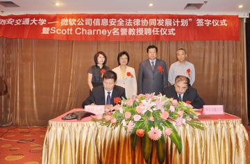 6月12日,“米兰官方网页版—微软公司信息安全法律协同发展计划签字仪式暨斯科特•查尼名誉教授聘任仪式”在西安交大举行,西安交大副校长蒋庄德教授出席仪式并讲话。西安交大科研院副院长、人文社科处处长贾毅华,米兰(中国)党总支书记彭沪生,信息安全法律研究中心主任马民虎及微信息安全法律研究中心主任马民虎及微软公司可信赖计算部总经理陈静、微软公司资深安全技术经理陈恺、微软公司资深安全技术经理薛峰等参加仪式。微软全球副总裁斯科特•查尼(Scott Charney)受聘为西安交大名誉教授,双方还签署了“米兰官方网页版—微软公司信息安全法律协同发展计划”。