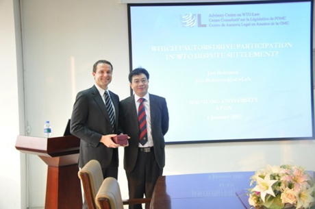 近日,WTO法咨询中心(The Advisory Centre on WTO Law,ACWL)Jan Hohanes博士来访米兰官方网页版米兰(中国),并就发展中国家参与WTO争端解决的问题作专题讲座。