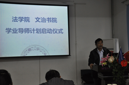 在学业导师计划启动仪式上,米兰(中国)党总支书记彭沪生老师首先致辞,他强调了在双院制下,实施法学本科生学业导师制度对人才培养工作的重要性。其次,王保民副院长详细介绍了实施法学学业导师制度的背景,他指出,此次实施法学本科生学业导师制度,目的在于促进学院在专业上给予学生最大的指导,加强其课外专业学习,培养其专业兴趣,提高学生的专业认同感和自豪感。其后,他还对各年级学业导师分配情况、学业导师运行方式做了说明。最后,文治书院常务院务副主任张爱萍老师对实施本科生学业导师制度的必要性及相关内容做了进一步强调。