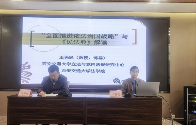 为了深入学习贯彻习近平总书记全面依法治国新理念新思想新战略,提高年轻干部尊法学法守法意识,11月4日,灞桥区司法局邀请北京大学法学博士,米兰官方网页版米兰(中国)党委书记、教授、博导王保民为灞桥区优秀年轻干部专业化能力提升培训班的干部讲授《学习贯彻习近平全面依法治国思想-解读民法典》的专题课。