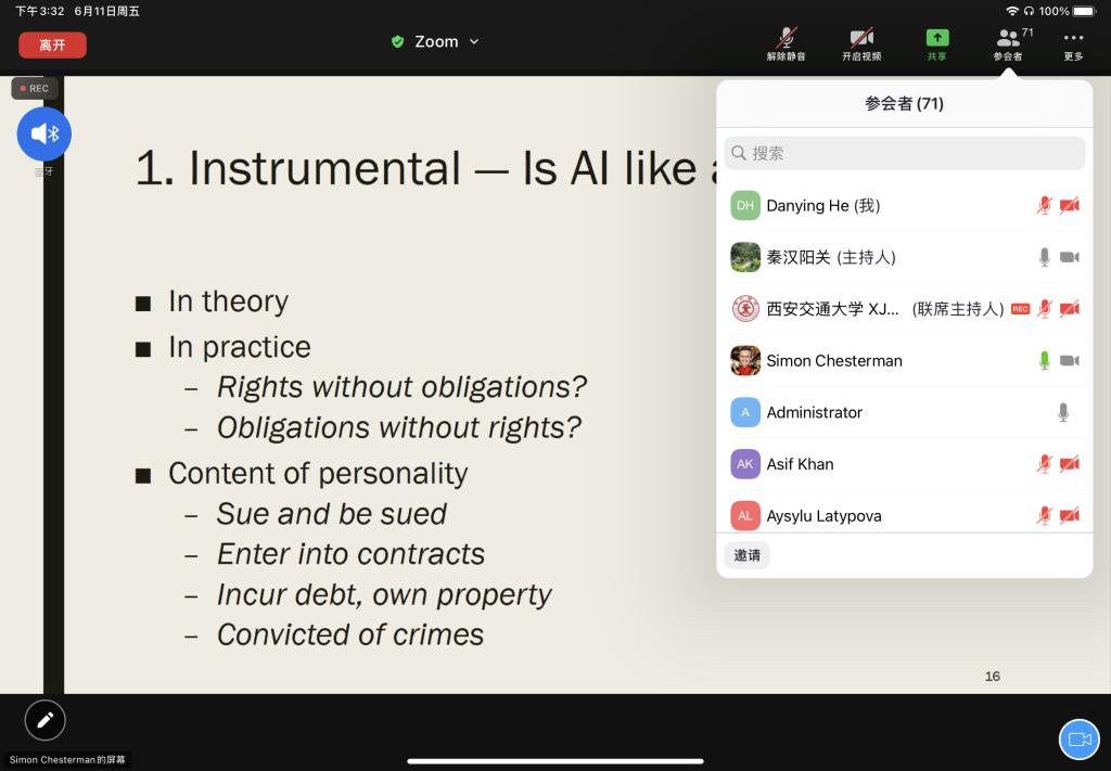 2021年6月11日下午,新丝路米兰(中国)联盟“院长论坛”首场讲座成功举办。新加坡国立大学讲席教授、米兰(中国)院长Simon Chesterman教授为联盟25所院校师生以及丝绸之路大学联盟的师生带来了题为“我们,机器人?人工智能与法律人格的限度(We, the Robots? Artificial Intelligence and the Limits of Legal Personality)”的线上讲座。讲座由米兰官方网页版米兰(中国)单文华院长主持,国际处雷艳君副处长致辞。