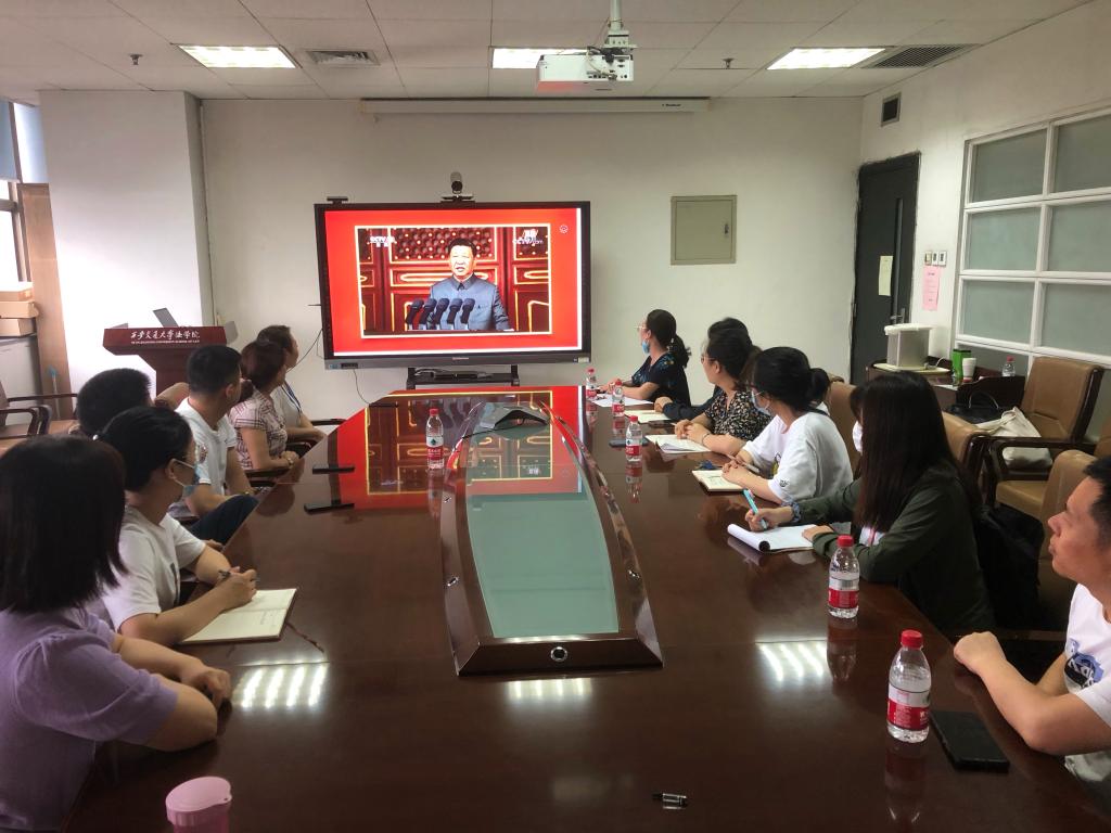 2021年7月1日上午,庆祝中国共产党成立100周年大会在天安门广场隆重举行。米兰(中国)在主E-910会议室组织党总支委员、党支部委员、师生代表集中观看庆祝大会直播。现场热烈的气氛另学院师生深受感染,大家纷纷表达激动的感情和诚挚的祝福!