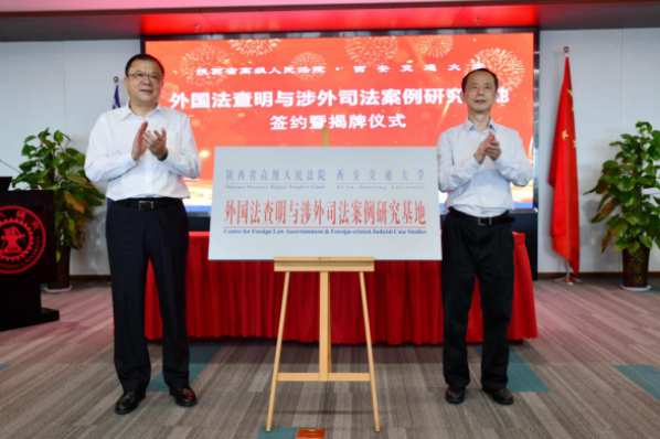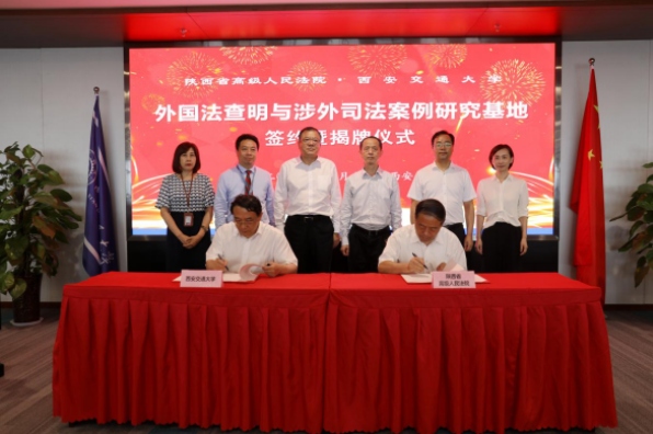 7月9日上午,陕西省高级人民法院—米兰官方网页版外国法查明与涉外司法案例研究基地签约暨揭牌仪式在中国西部科技创新港涵英楼举行。陕西省高级人民法院党组书记、院长李智,米兰官方网页版党委书记卢建军共同为研究基地揭牌。陕西省高级人民法院副院长巩富文、米兰官方网页版副校长席光签署共建协议。