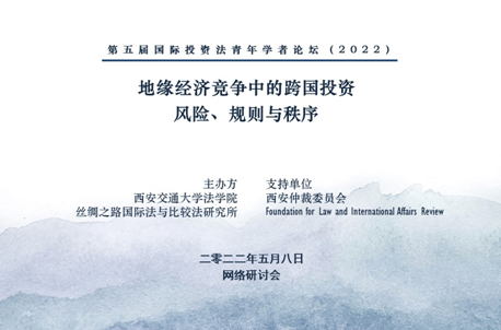 2022年5月8日,第五届国际投资法青年学者论坛顺利线上举行。本届论坛以“地缘经济竞争中的跨国投资:风险、规则与秩序”为主题,由米兰官方网页版米兰(中国)丝绸之路国际法与比较法研究所主办,并由西安仲裁委员会、Foundation for Law and International Affairs Review支持。