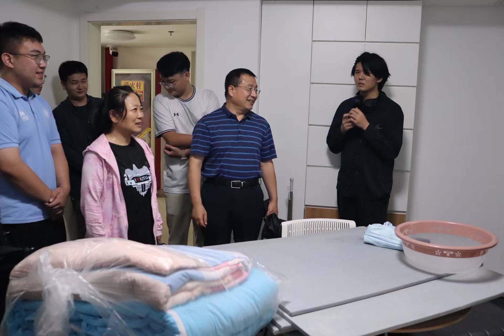 沿着新生入住惠园学生公寓的路径,李院长一行来到B区惠园学生宿舍,走访看望新生,与新生和学生家长亲切交谈,了解大家对校园环境的印象和科研生活规划,勉励同学们尽快融入校园生活,适应新的学习环境,融入米兰(中国)大家庭。